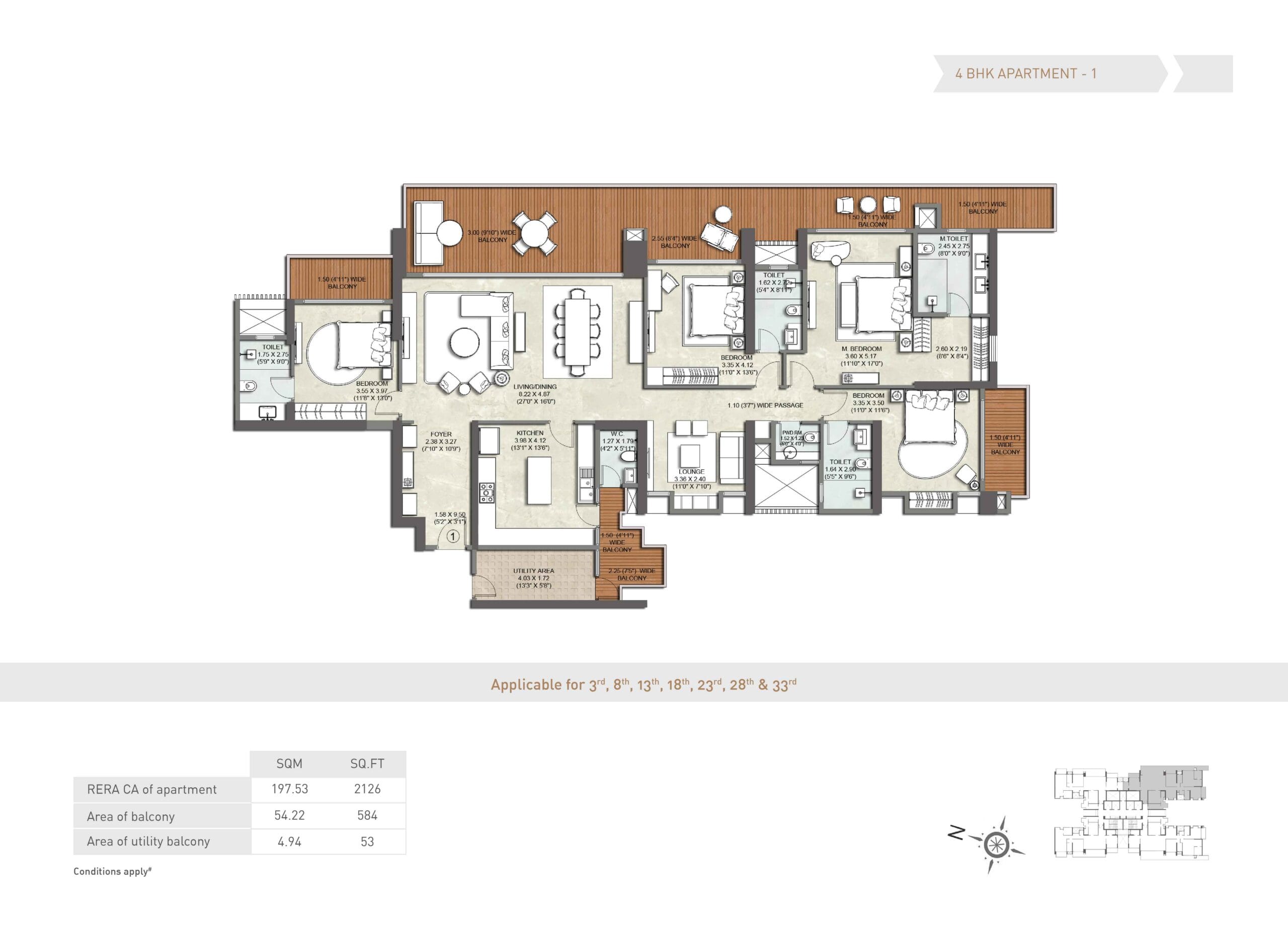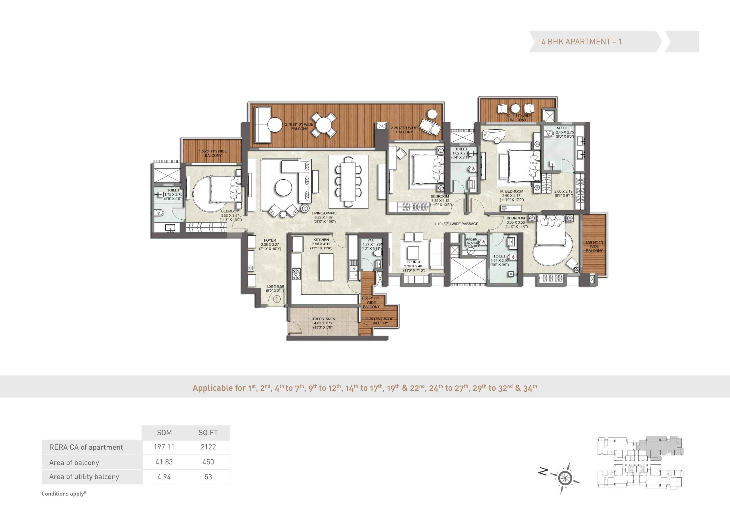 To add on the comfort, it is given with four elevators along with a service elevator to facilitate the residents while ensuring their multilevel privacy and security.