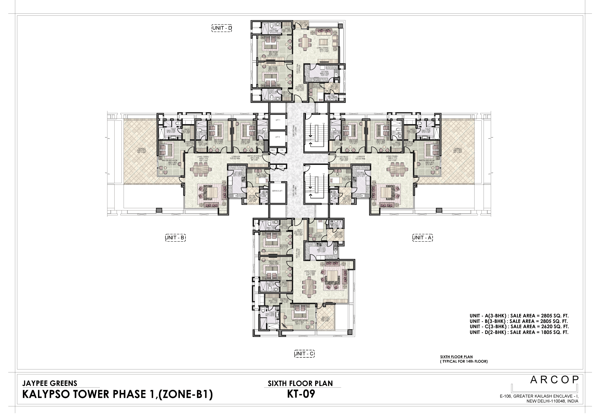 The Kalypso Court at Jaypee Greens Noida are masterfully crafted apartments that celebrate the high efficiency of modern lifestyle with special emphasis on providing excellent views of the landscaped greens from all key spaces of your home. These apartments offer access to social clubs and other recreational facilities for the entire family. The traditional format of separating the different domestic functions into lounge, dining etc. is respected but at the same time integrated in these apartments. The result is a special atmosphere, set off by the interplay between the material used, the spatial proportions and natural light. Jaypee Greens Kalypso Court apartments are available in 2/3/4 BHK option and offer the ultimate escape from all but the birds and the tranquil views of the greens and the parks.Possession was already offered to residents in 11 towers of Kalypso Court. Thereon, the residents of Tower 7 & 8 have been offered Offer of Possession as per the occupation certificate received from the authorities, In the next few weeks. residents of Tower 11 & 12 will also be offered possession as per the occupation certificate received from the authorities.As per AIG Stamp Gautam Buddh Nagar vide order dated 17.11.2022, all have been requested to register their apartments within 1 month of receipt of OC.For Sales Queries, please contact: