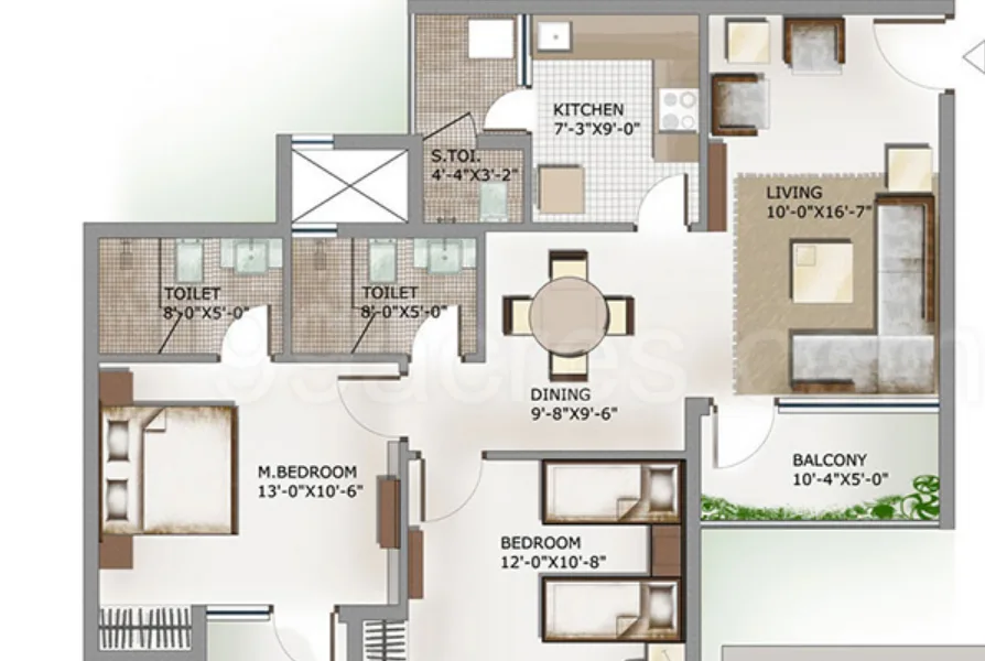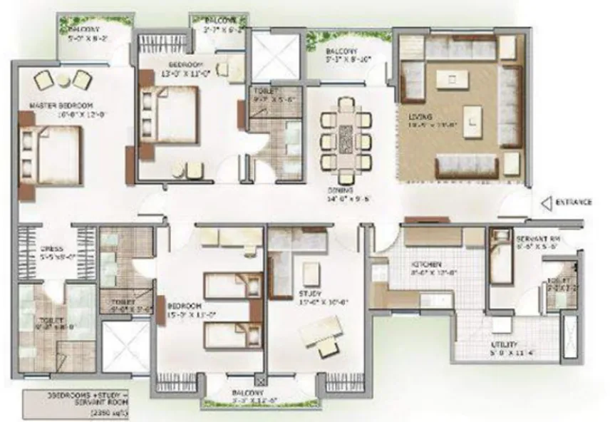 The project offers 988 sq. ft. to 2587 sq. ft. configurations. For more details, you can visit our “Floor Plans & Pricing” section.